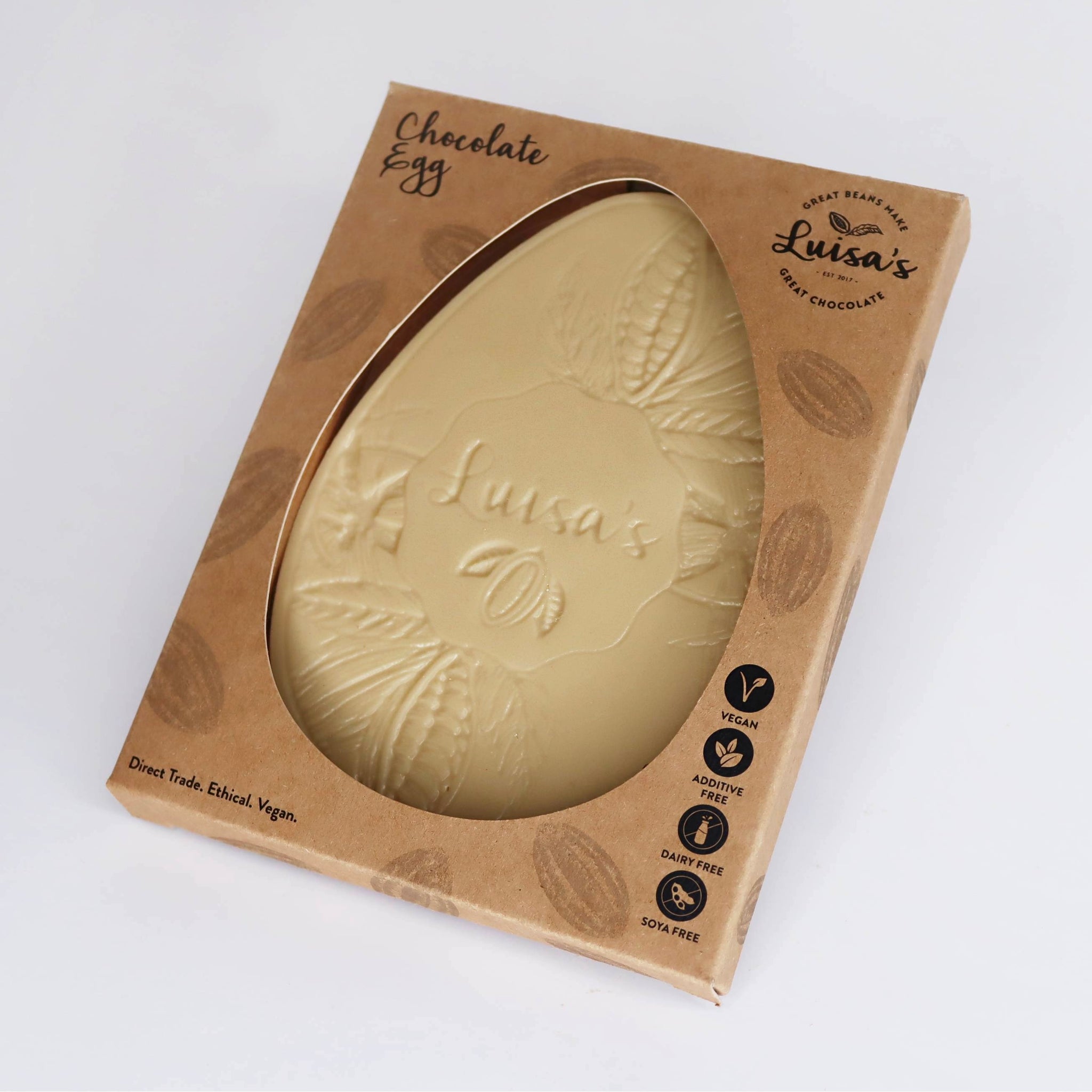 Our handcrafted artisan Easter egg is a celebration of flavour, craft, and ethics. This generous slab of luxurious chocolate features a unique cacao pod design and is perfectly flat and postable - making it a thoughtful and elegant Easter gift. Now in biodegradable packaging made from sea kelp.